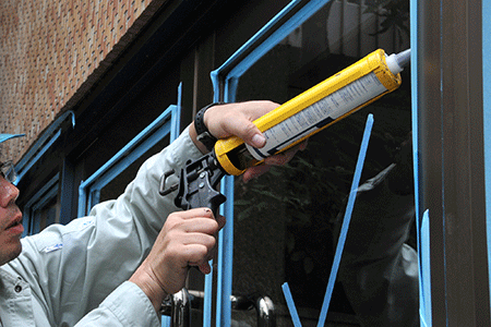 シーリング材などの密着性を高めるため、プライマーを下塗りします。